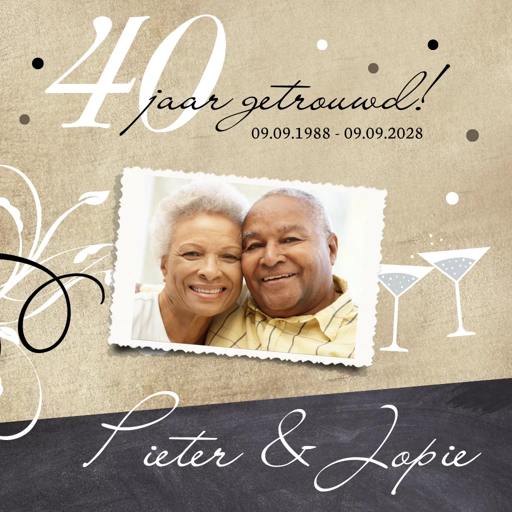 40 jaar getrouwd uitnodiging met foto cocktails en stipje