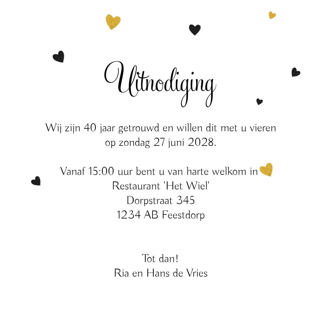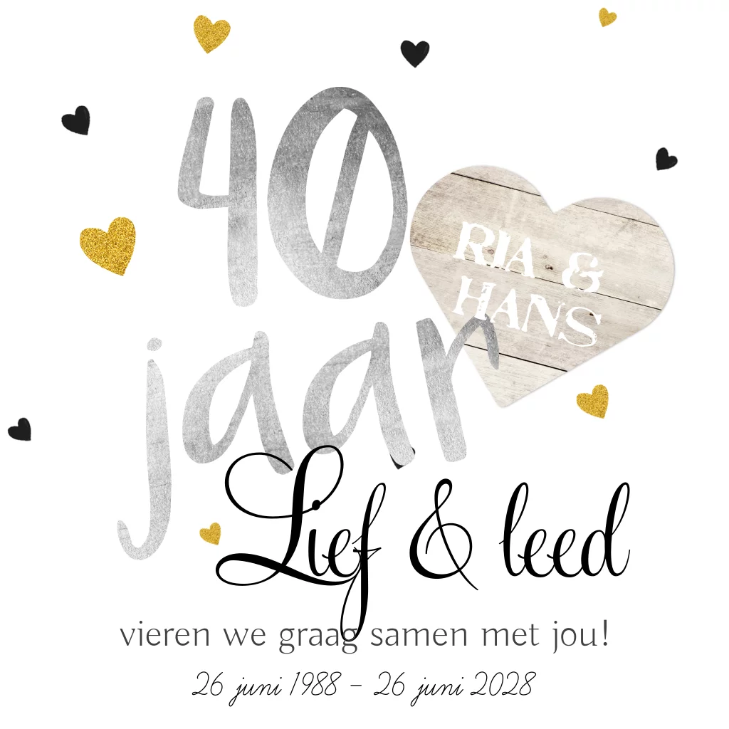 Uitnodiging 40 jaar getrouwd met zilver en hout