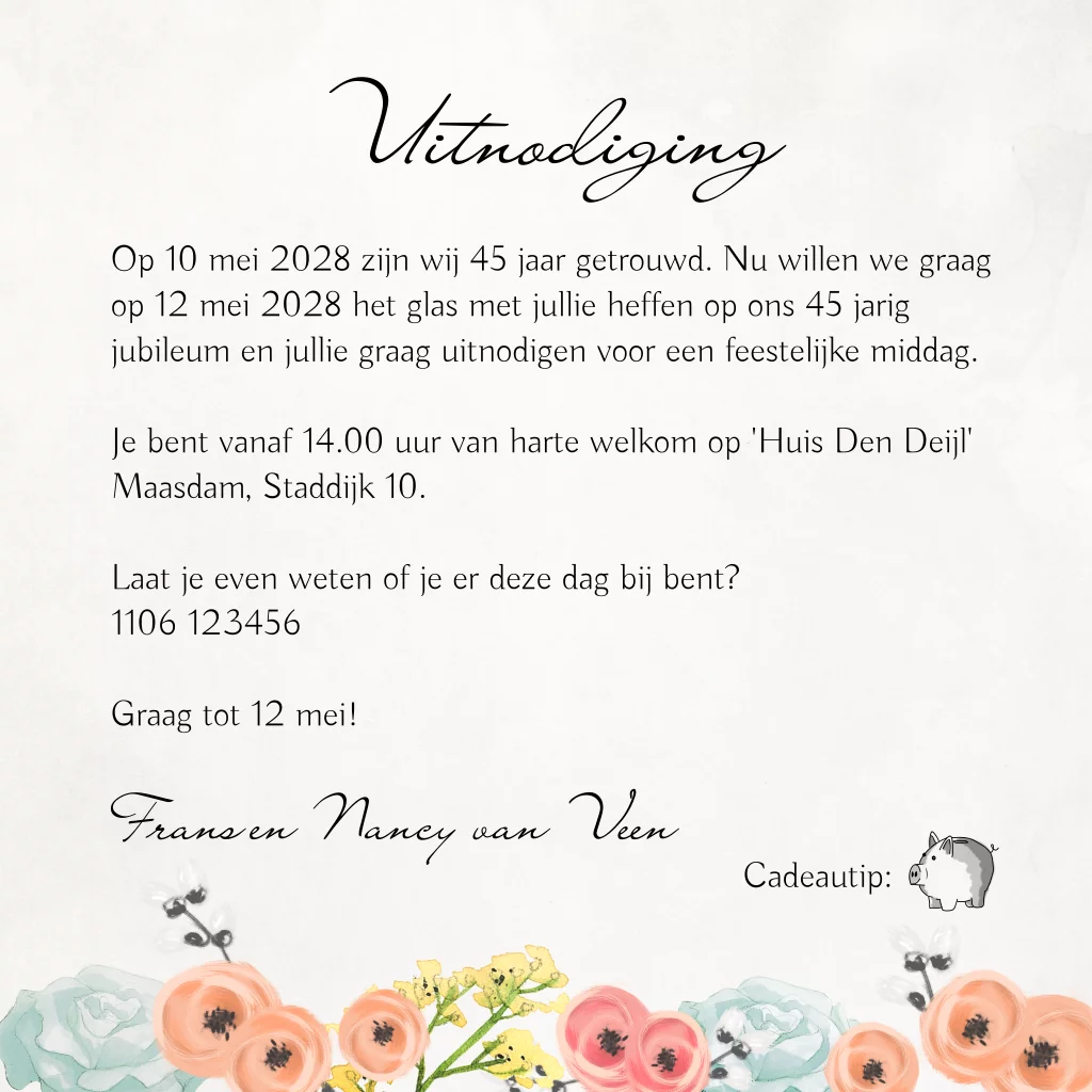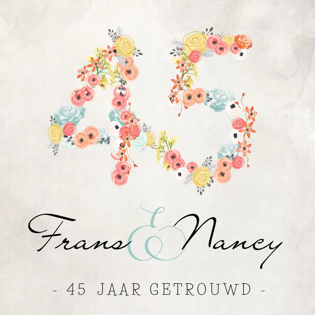 Uitnodiging 45 jaar getrouwd met sierlijke bloemen