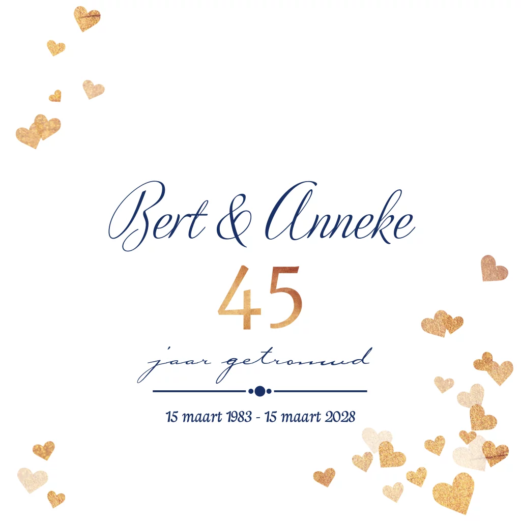 Uitnodiging 45 jaar getrouwd met gouden hartjes