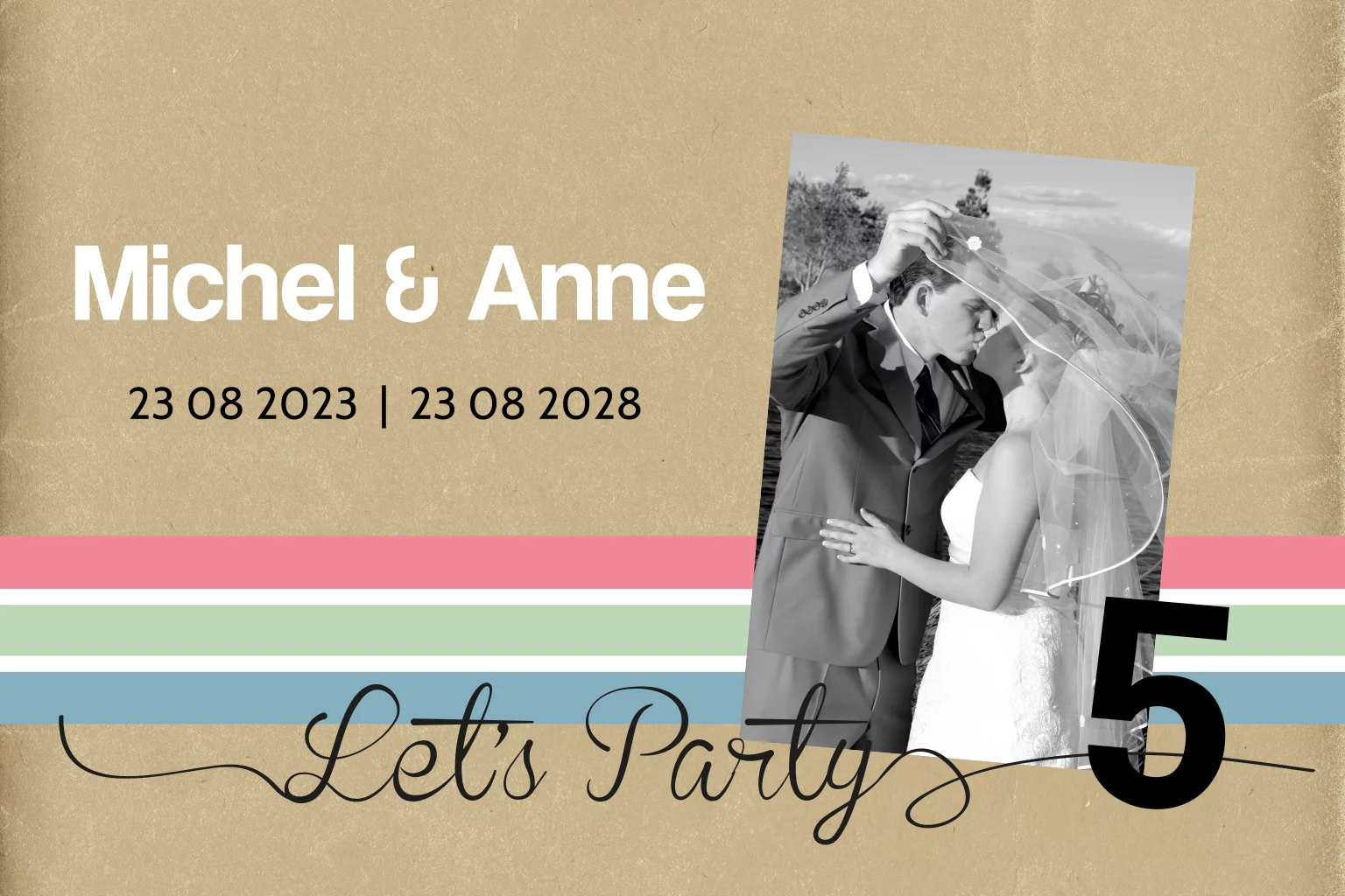 5 jaar getrouwd jubileumkaart met kleurrijke streep