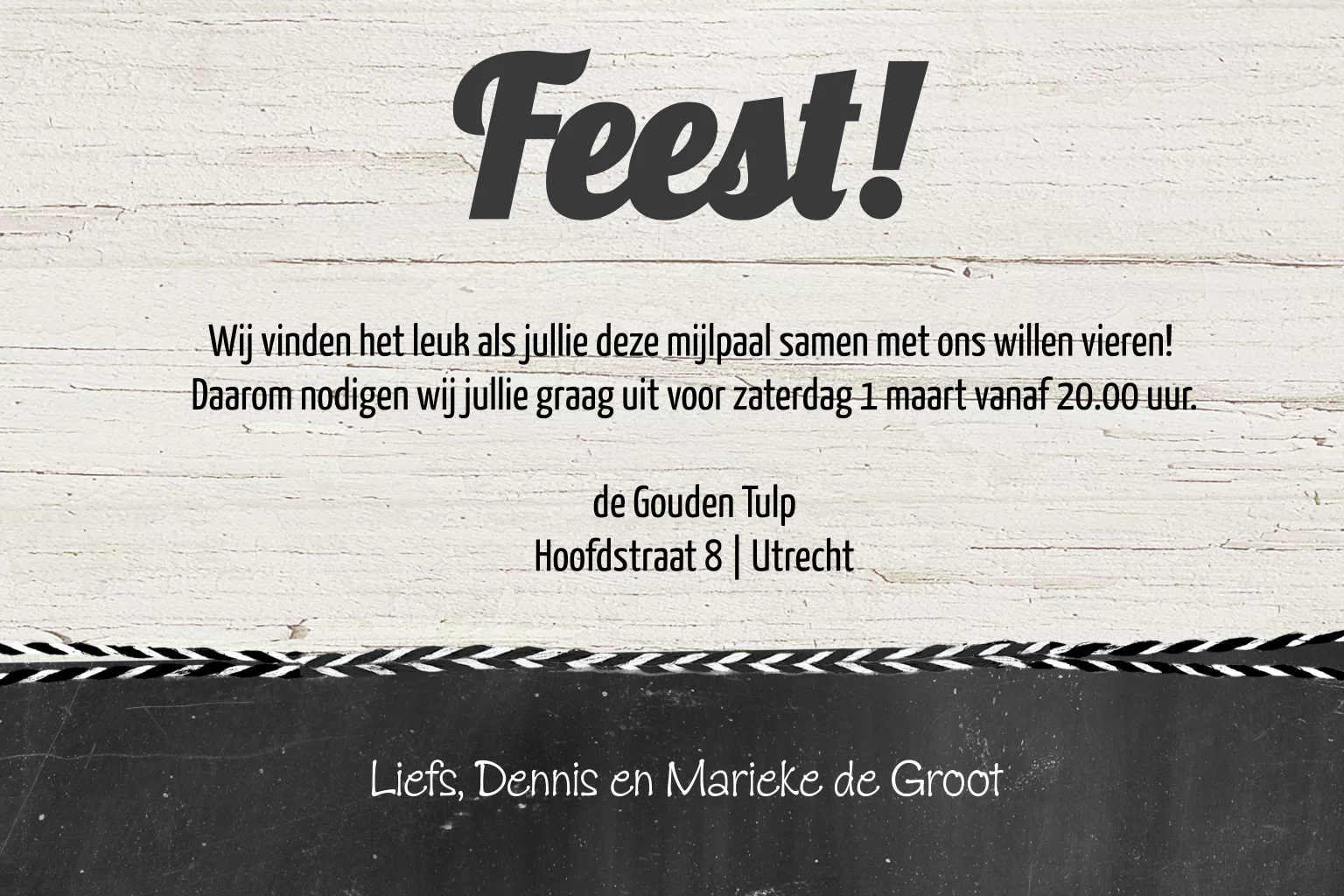 Op deze kleurrijke kaart met hartjes en schrijfpapier kun je jullie persoonlijke boodschap schrijven aan de gasten van jullie 5-jarige huwelijksfeest.
