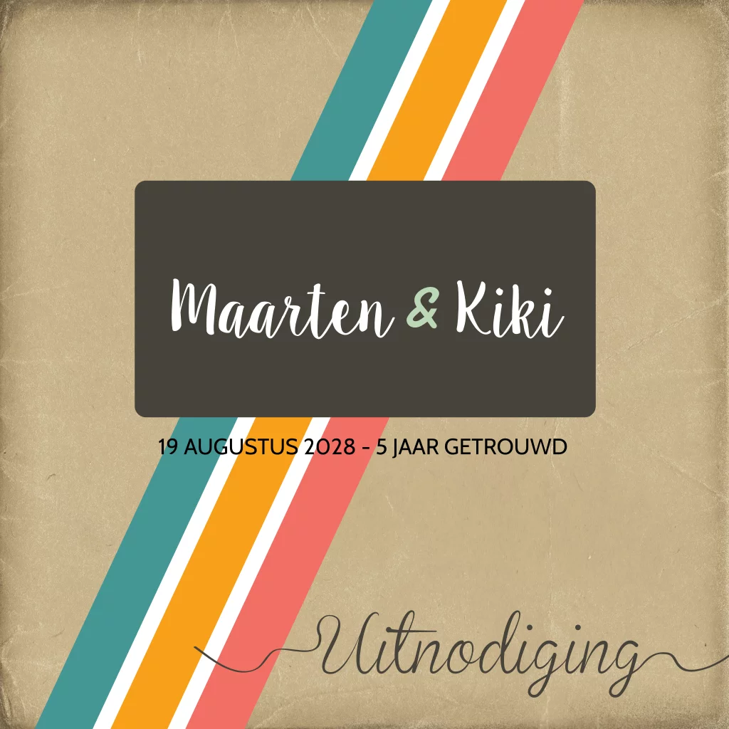 5 jaar getrouwd uitnodiging met kraft en kleurrijke strep