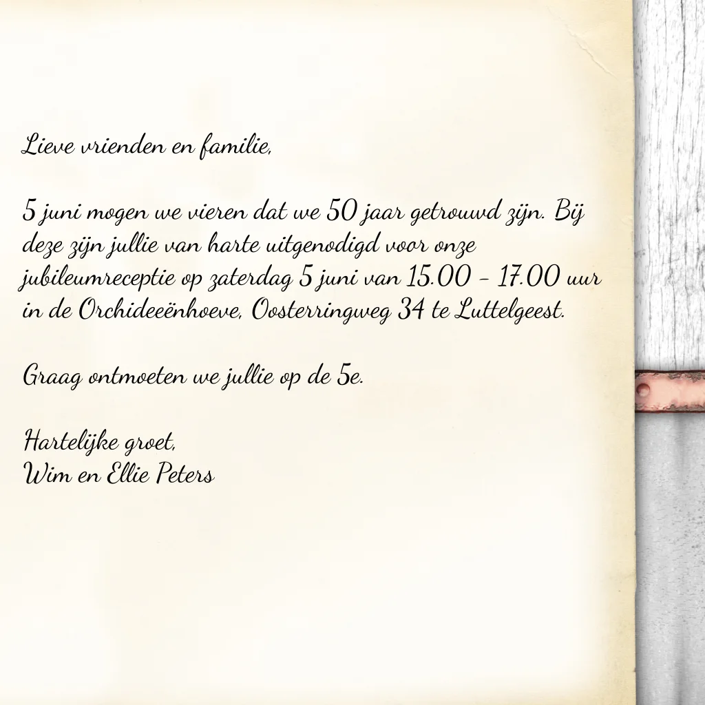 Een gouden jubileum op komst? Maak hier jullie eigen geprsonaliseerde uitnodiging.