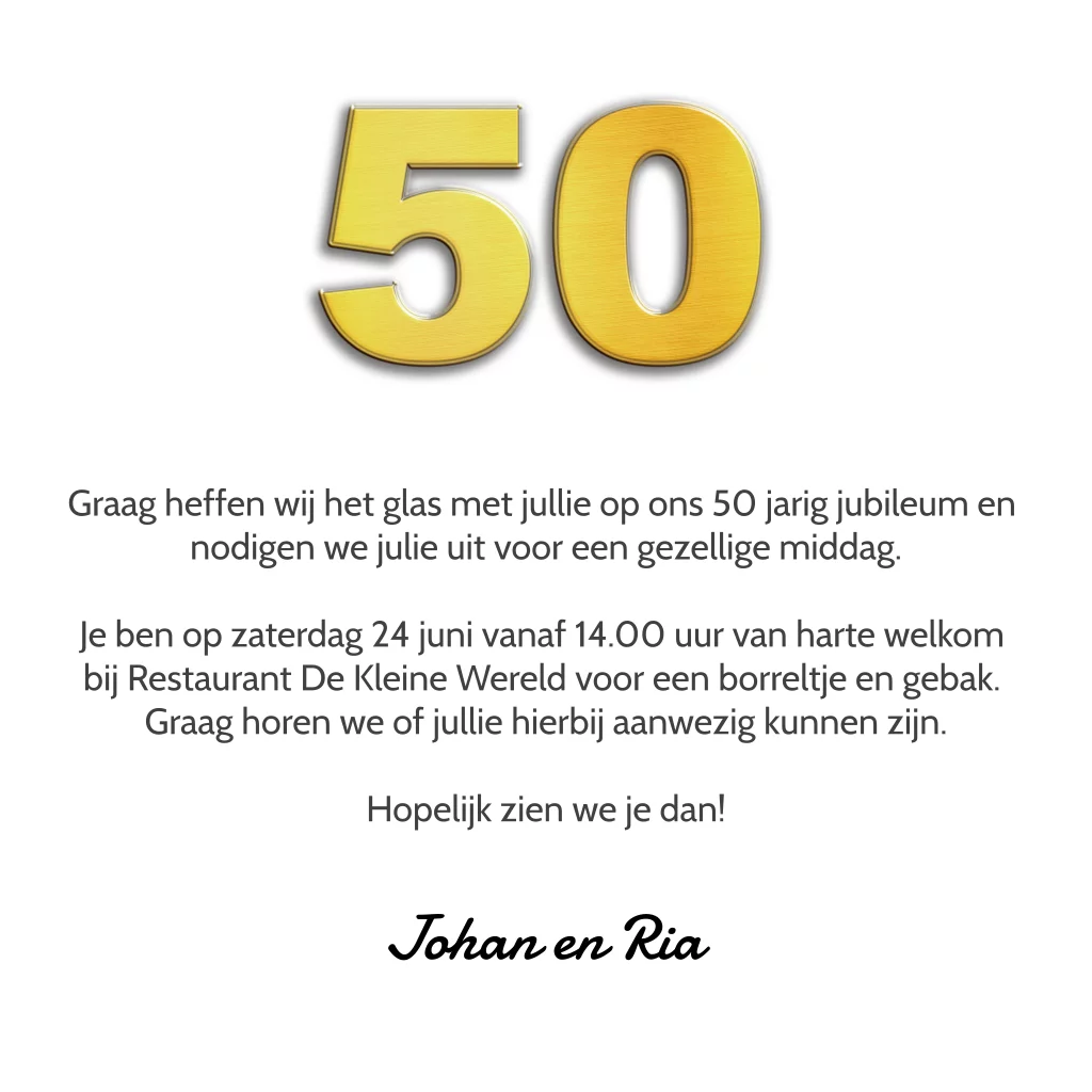 Uitnodiging vijftig jaar getrouwd met gouden 50