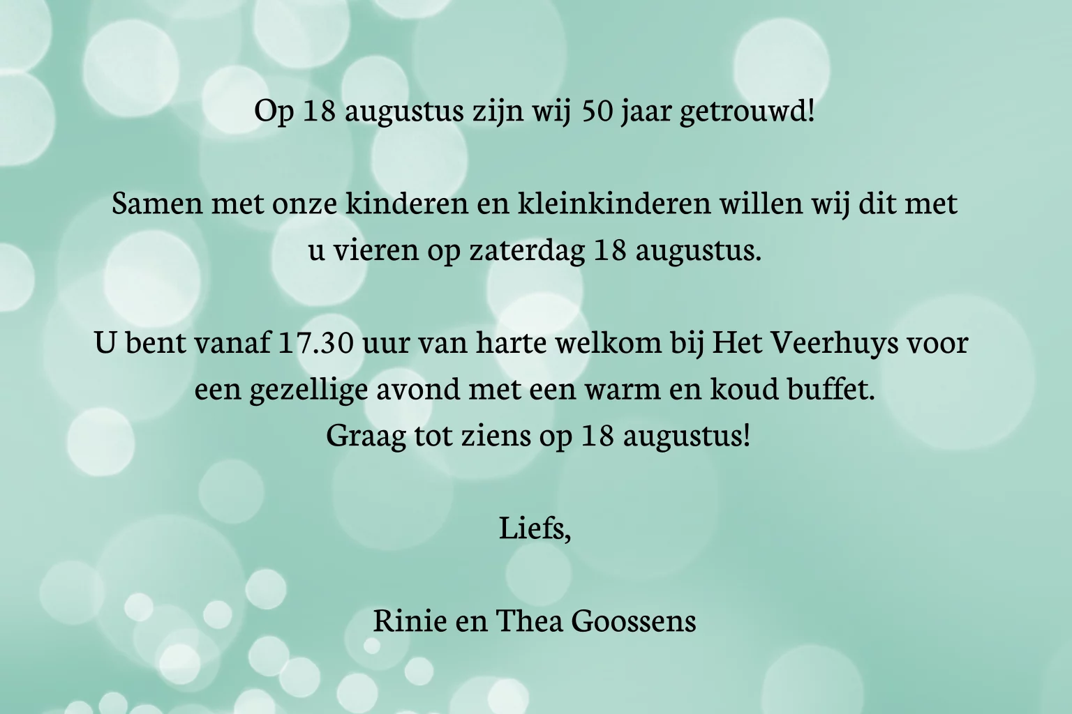 Uitnodiging 50 jaar getrouwd met zacht groene kleur
