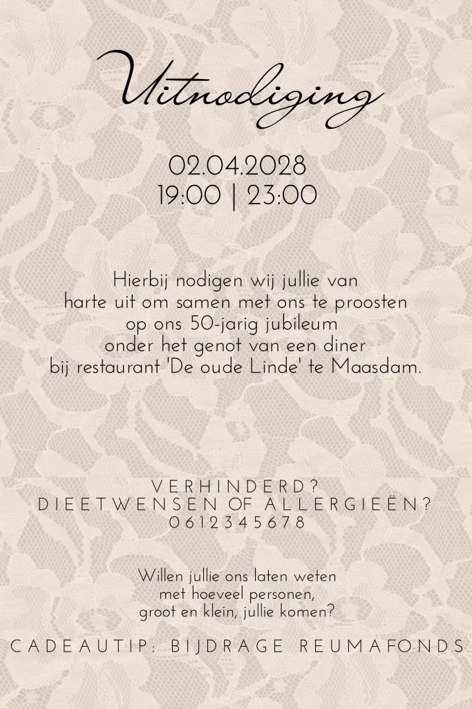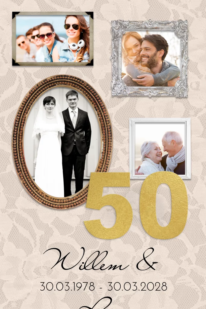 Uitnodiging vijftig jarig huwelijk met fotolijstjes