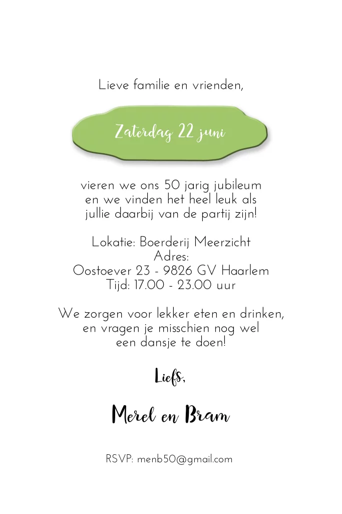 Botanische uitnodiging houten bordjes 50 jaar getrouwd
