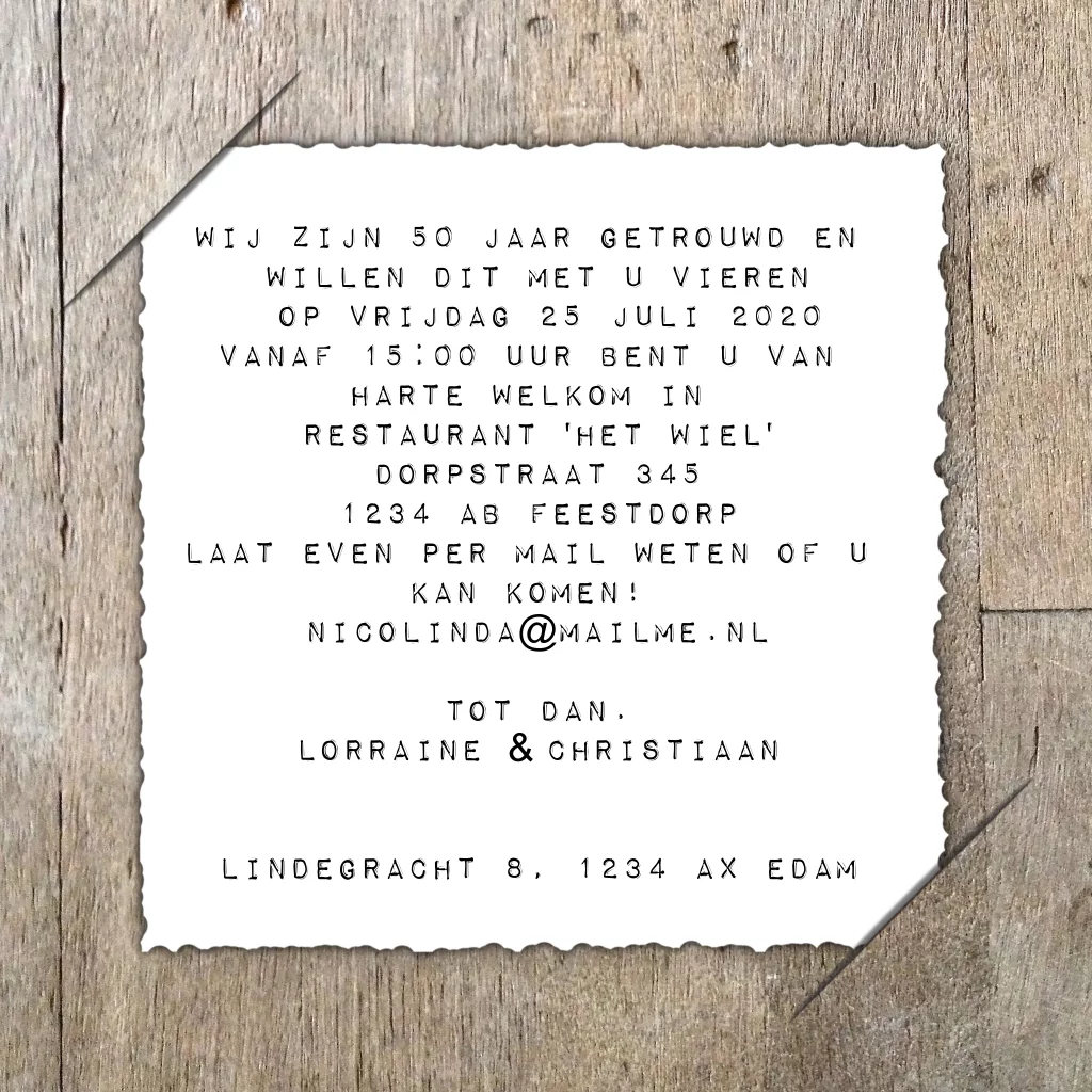 Een mooie sfeer en karaktervolle kaart met hout, metaal en ruimte voor een persoonlijke foto.