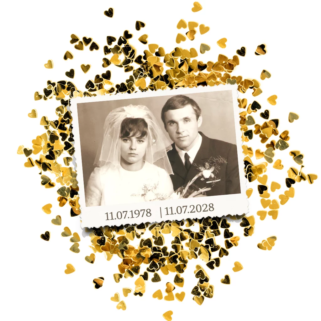 Uitnodiging 50 jaar getrouwd met goud en foto