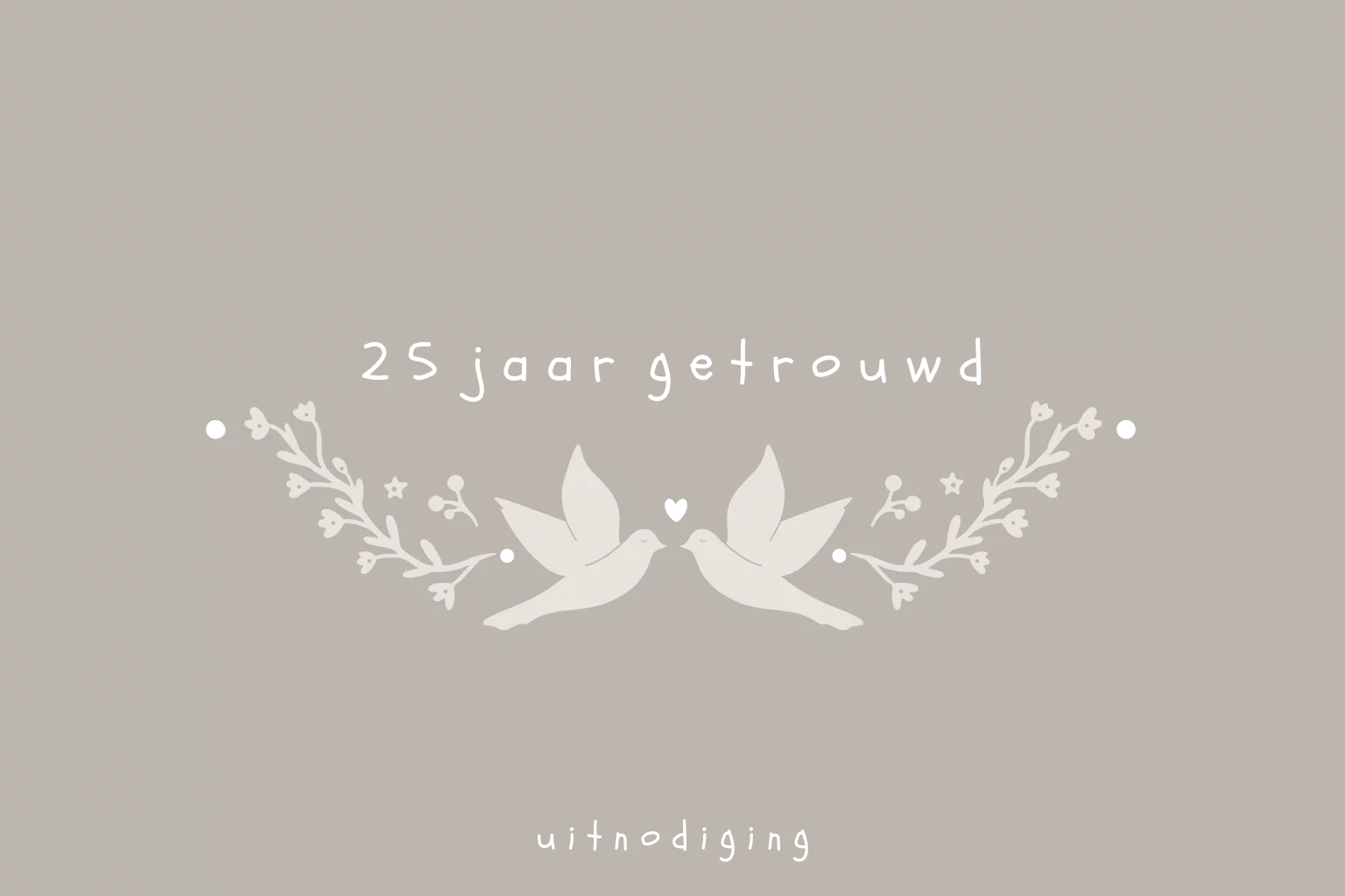 "Vier de liefde! 🕊️✨ 25 jaar samen, een duurzaam huwelijksjubileum. Nodig gasten uit om te stralen op jullie gouden feest vol liefde en herinneringen.