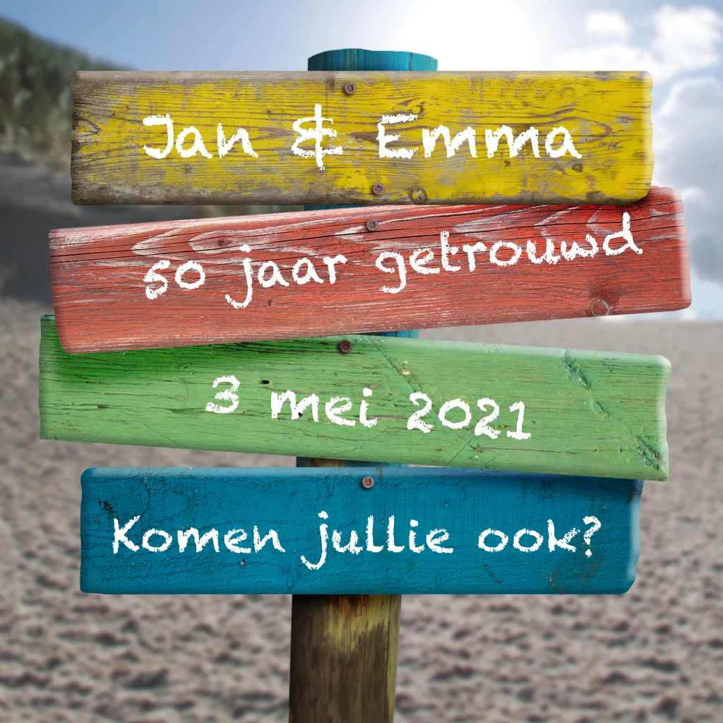 Uitnodiging 50 jaar getrouwd met gekleurde wegwijzer