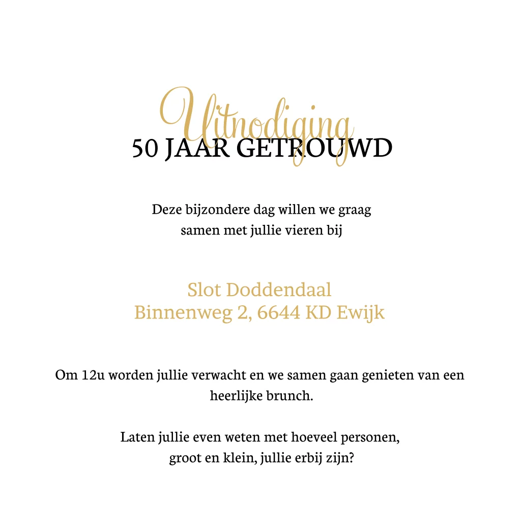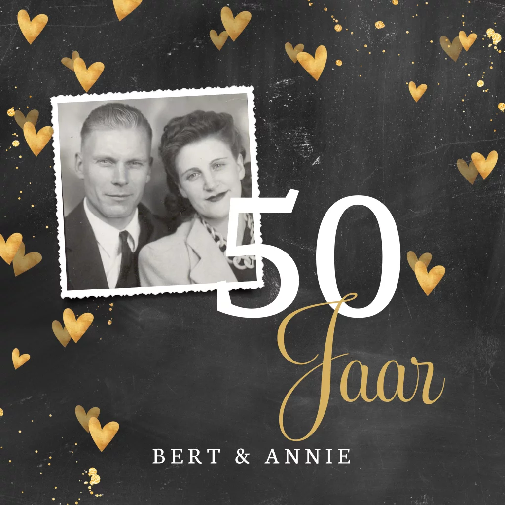 Uitnodiging 50 jaar getrouwd met hartjes en foto