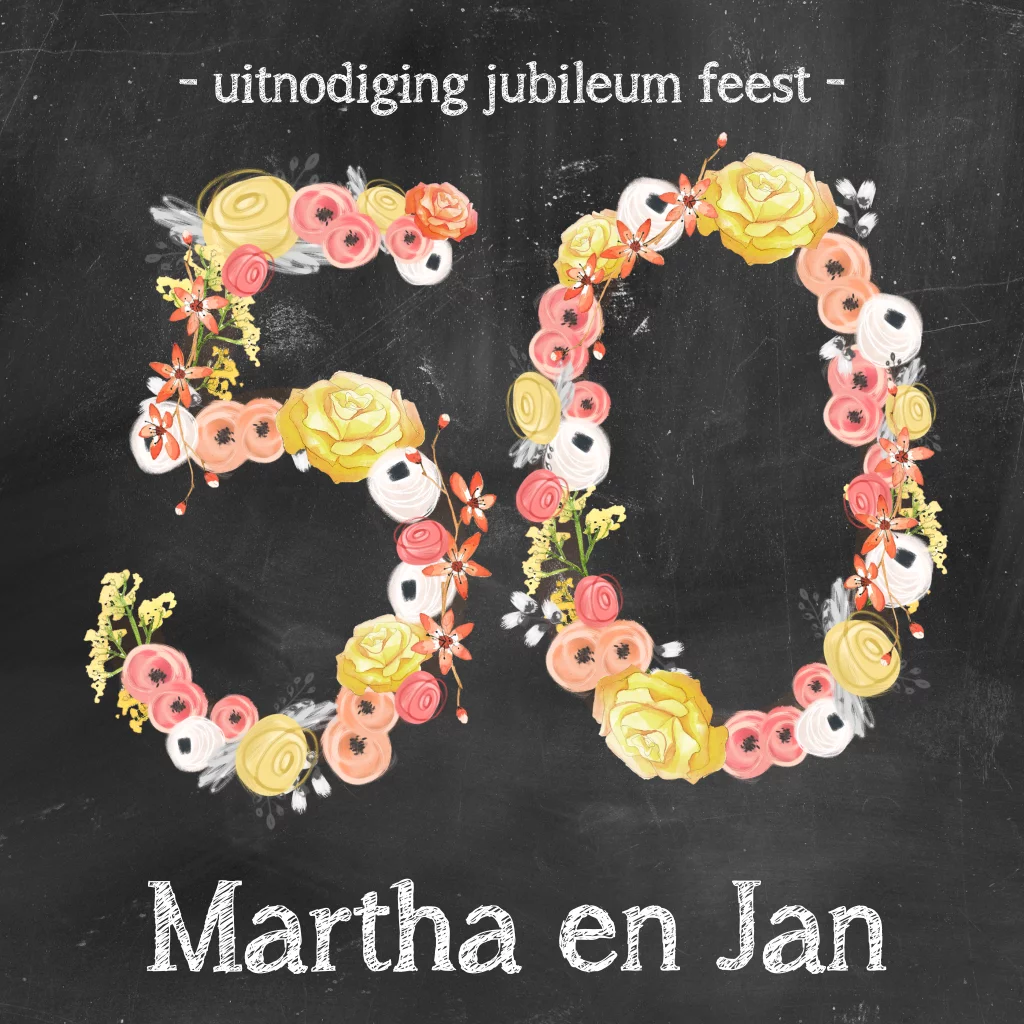 Jubileumkaart 50 jaar met krijtbord en bloemen