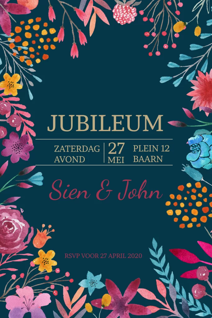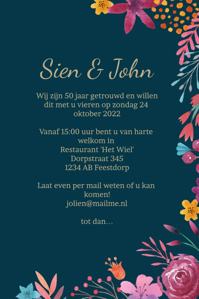 Uitnodiging 50 jaar getrouwd met kleurrijke bloemen