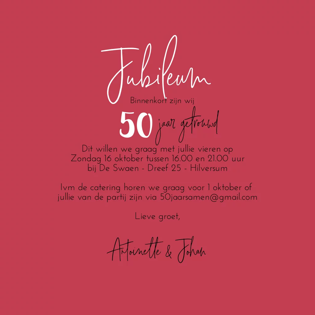 Prachtige stijlvolle kaart als uitnodiging voor jullie jubileum met een hart van bloemen. Binnen met kader voor jullie foto.