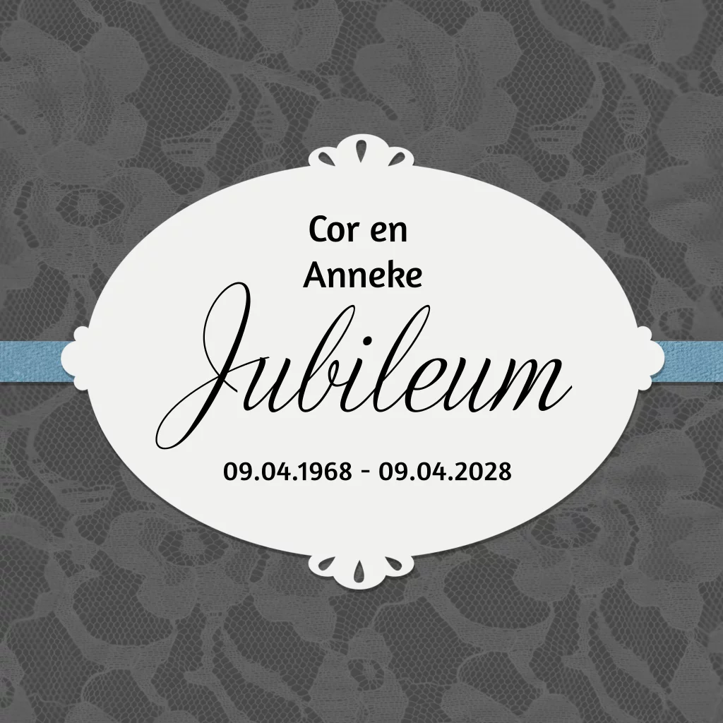 Mooie klassieke uitnodiging voor jullie 60 jarig huwelijksjubileum. Mooi grijze kant achtergrond met een blauw lintje.