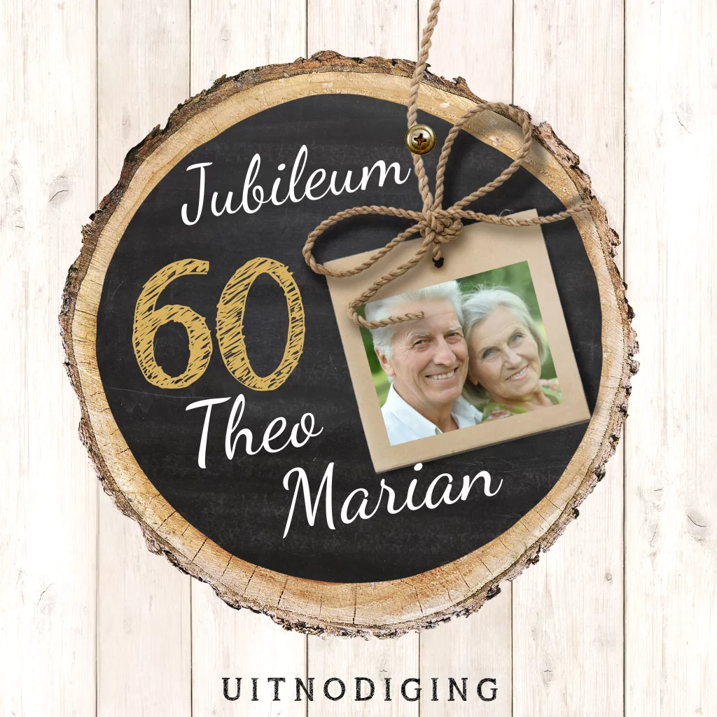 60 jaar getrouwd jubileum uitnodiging met foto op hout