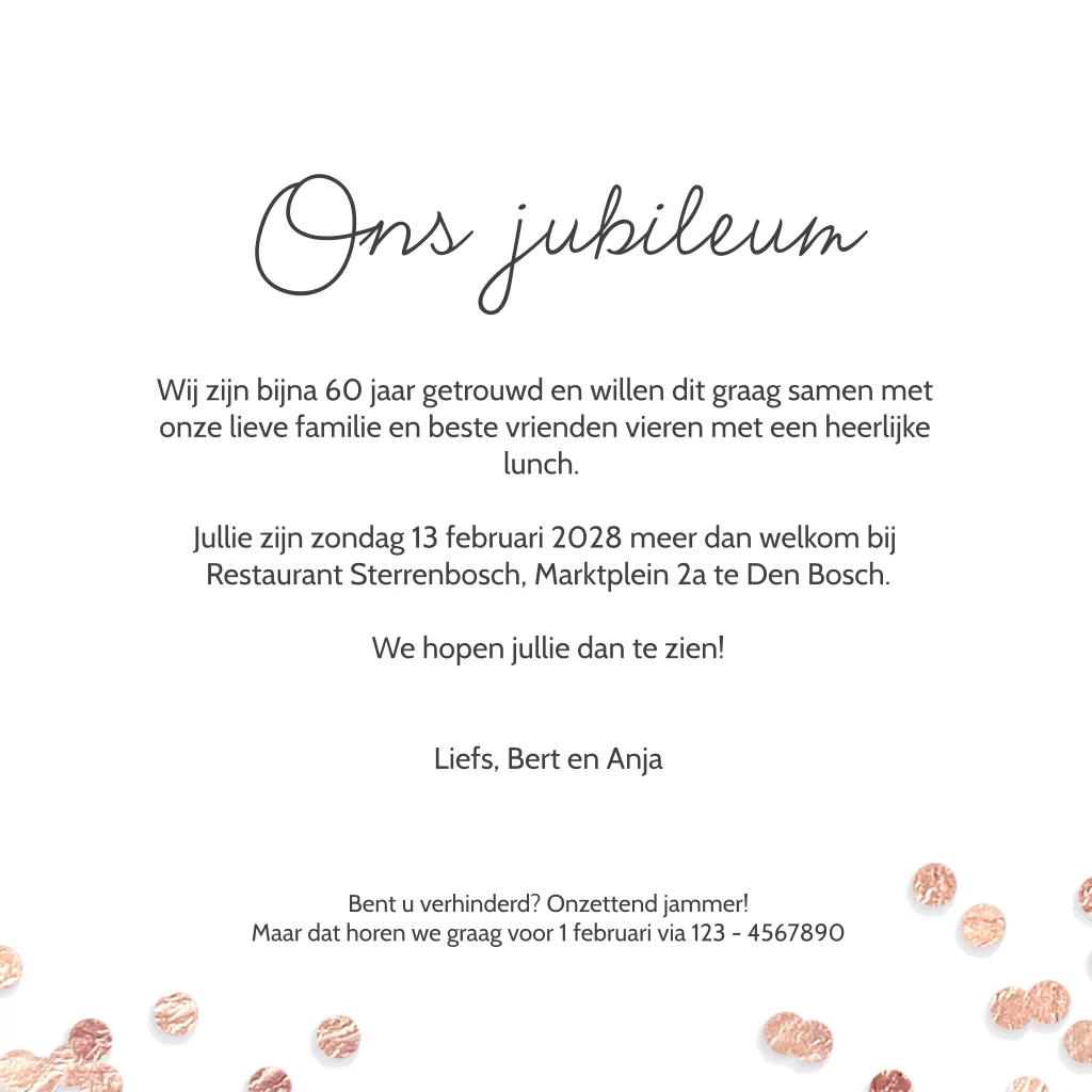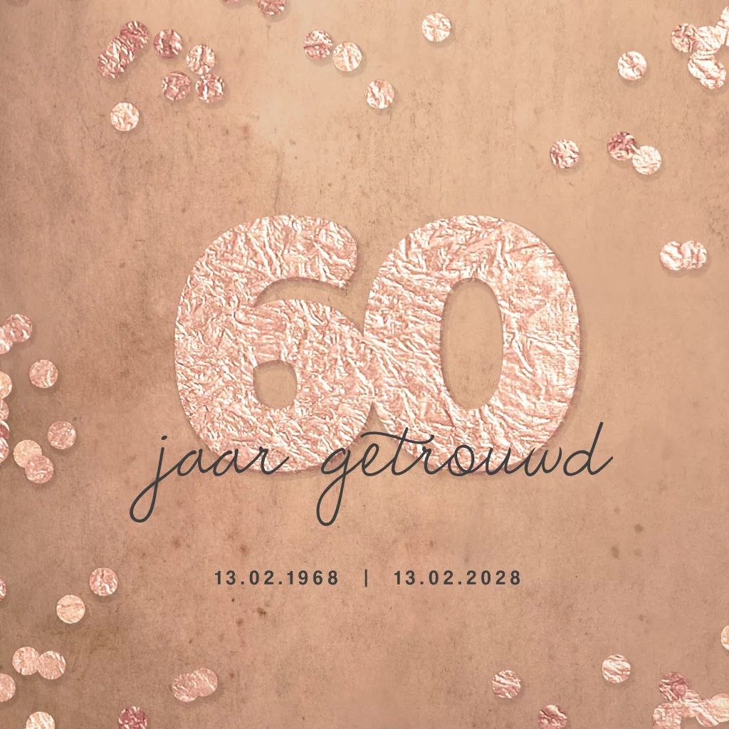 Uitnodiging 60 jaar getrouwd met rose gouden confetti