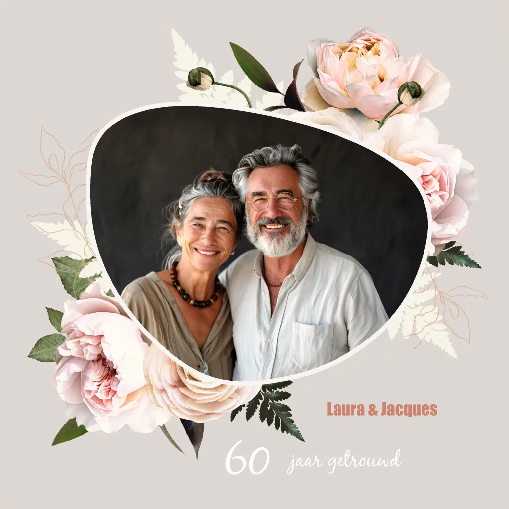 Prachtige kaart als uitnodiging voor jullie huwelijksjubileum. Een hip fotokader met roze rozen eromheen. Makkelijk te maken en superleuk om te krijgen. Laat het feest vast beginnen .....