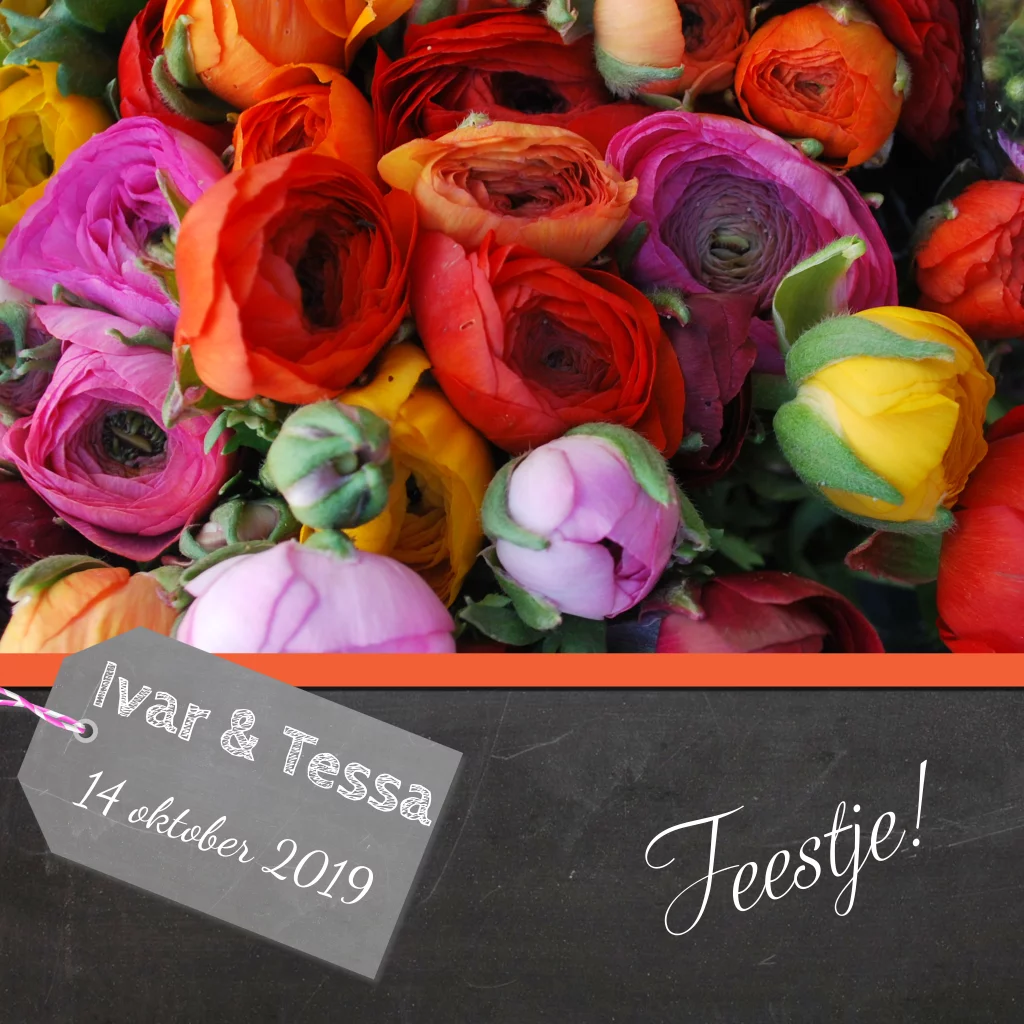Uitnodiging feestje met foto ranonkels