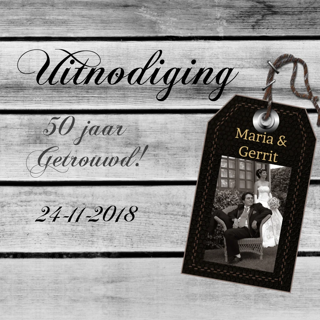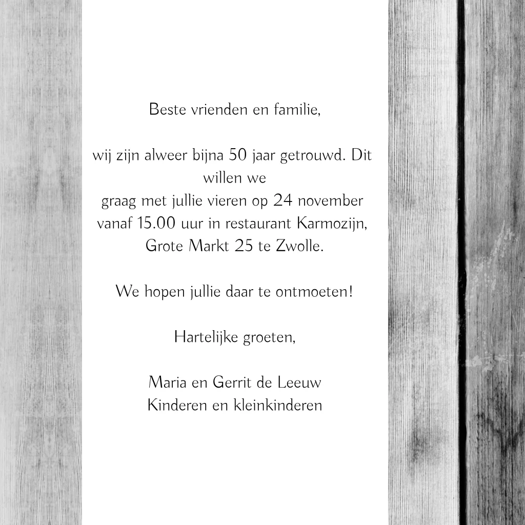 Stoere vierkante jubileumkaart. Pas de cijfers op de voorzijde aan en maak deze kaart geschikt voor ieder ander huwelijskjubileum. Bijzonder kaartje ontworpen door Rien Bijl.