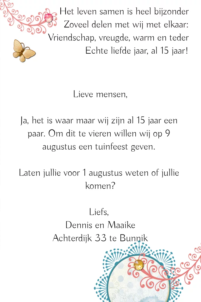 Nodig met deze zomerse klassieke uitnodiging je gasten uit voor jullie feest. Jubileumsgetal en tekst is aanpasbaar.