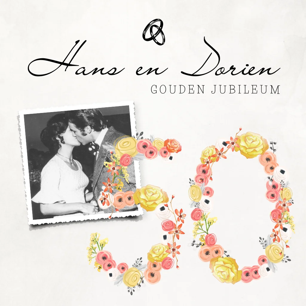 Uitnodiging voor gouden huwelijk met sierlijke bloemen