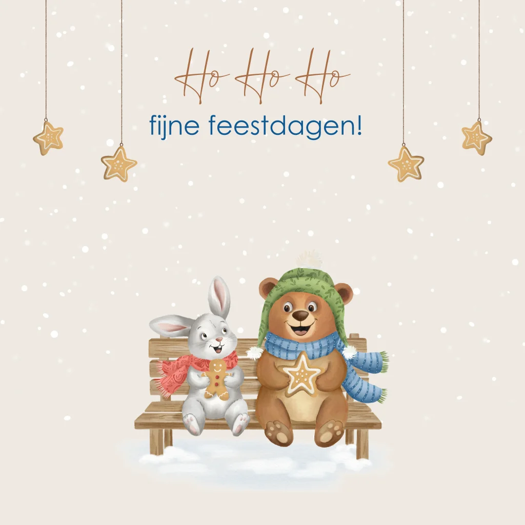 Kerstkaart beer en konijn