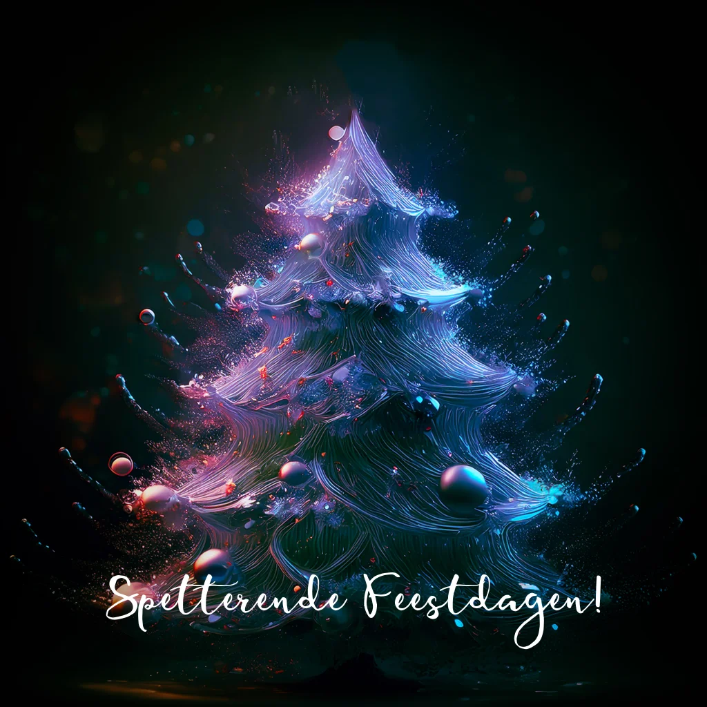 Een spetterend kaartje met een kerstboom gemaakt van water.