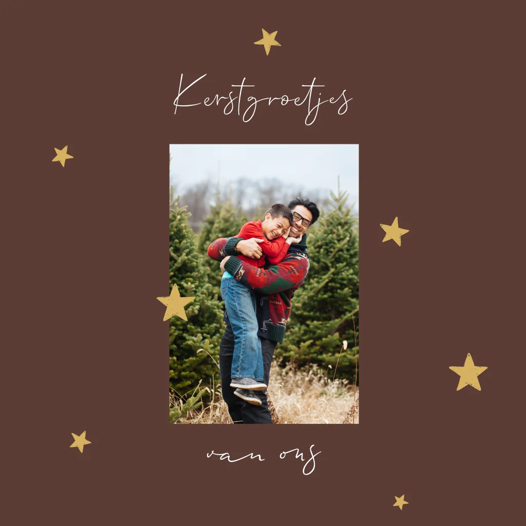 kerstkaart met foto en in scriptletter 'kerstgroetjes'