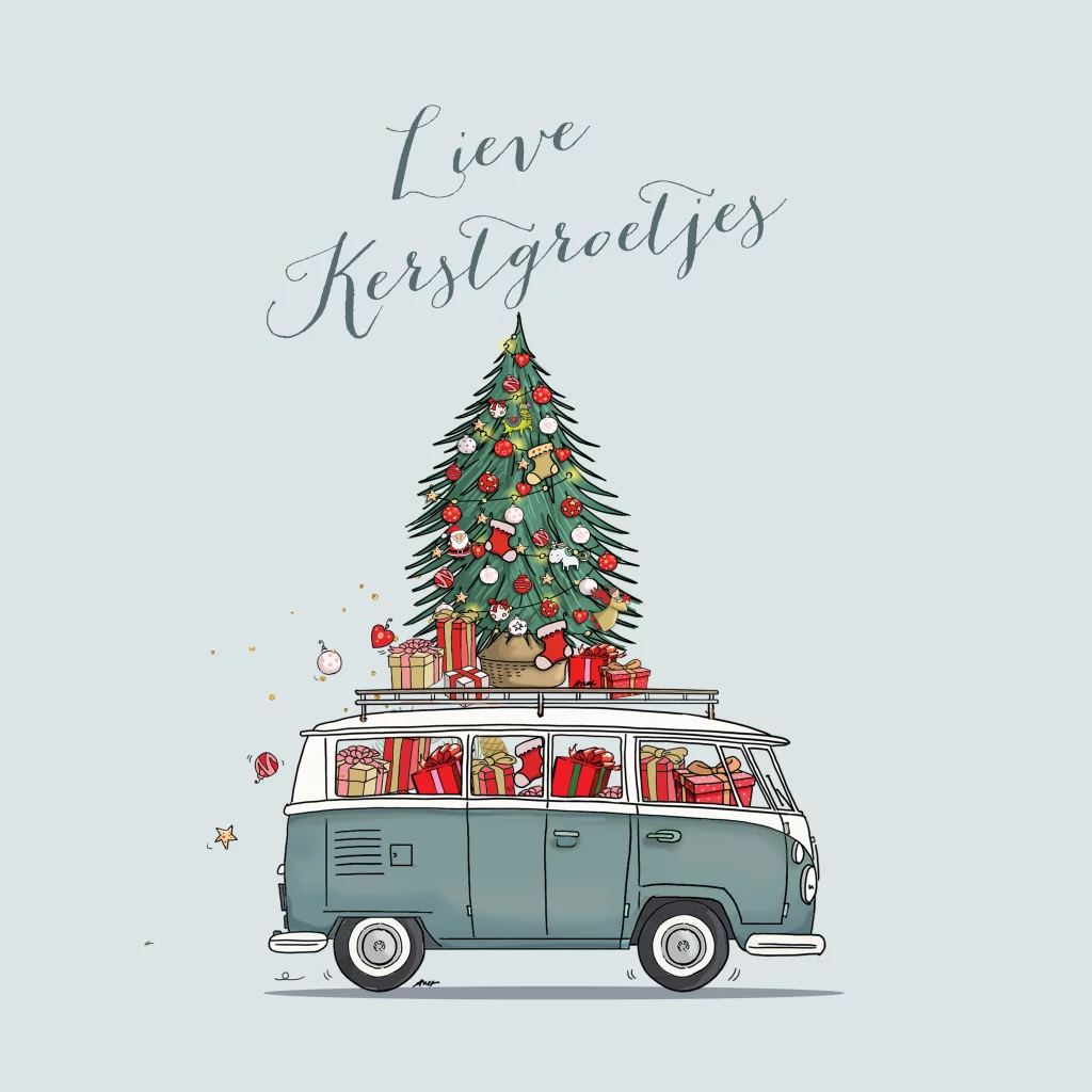 Met deze grappige bus en originele kerstkaart verover je het hart van al je familie. Vervang eenvoudig de tekst aan de binnenkant. Mooi met een rode envelop.