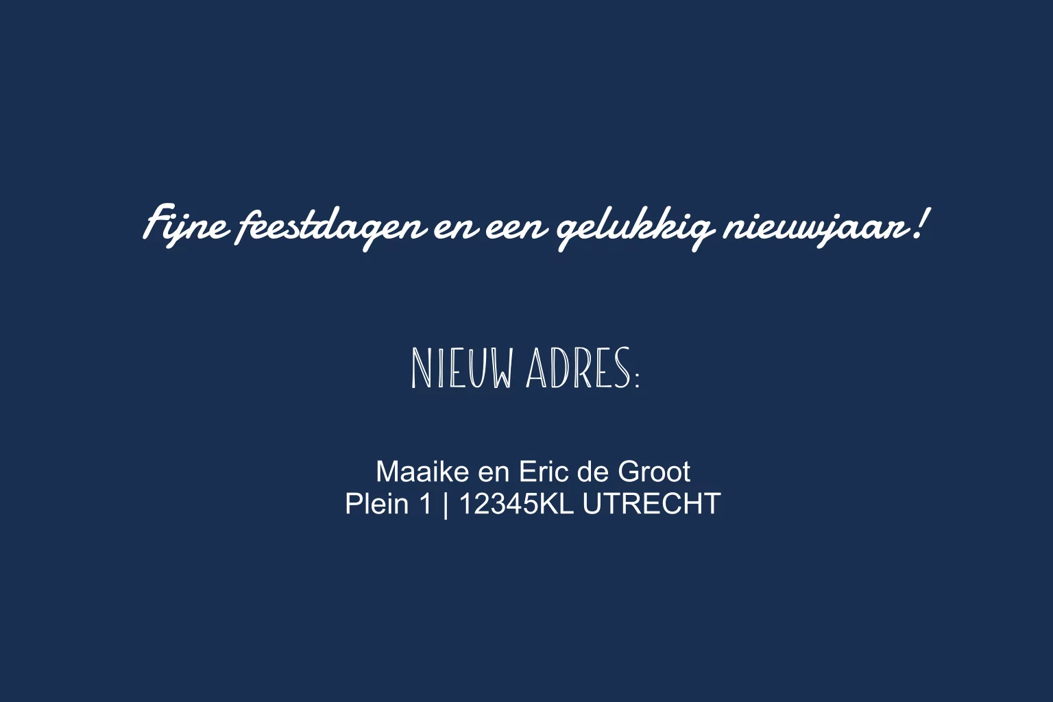 Kerst verhuiskaart met vuurpijl en vuurwerk en een vrolijk geïllustreerde auto. Past helemaal bij een verhuizing rondom de feestdagen. Leuk met een bijpassende kleur envelop erbij.