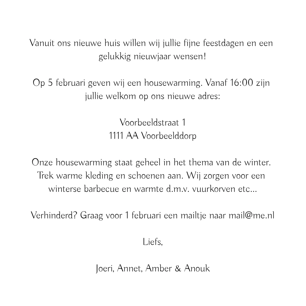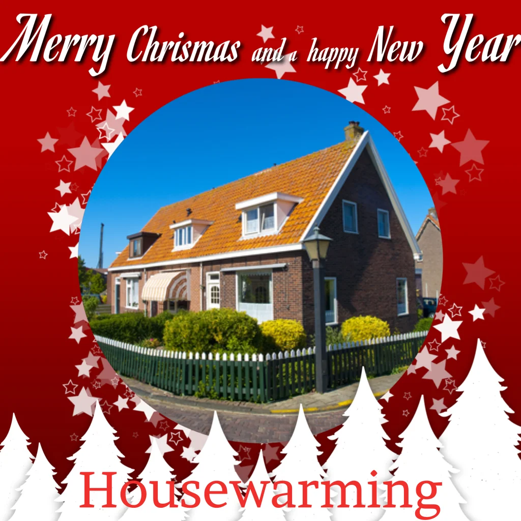 Laat iedereen weten dat je bent verhuisd en een housewarming geeft met deze kerstkaart.