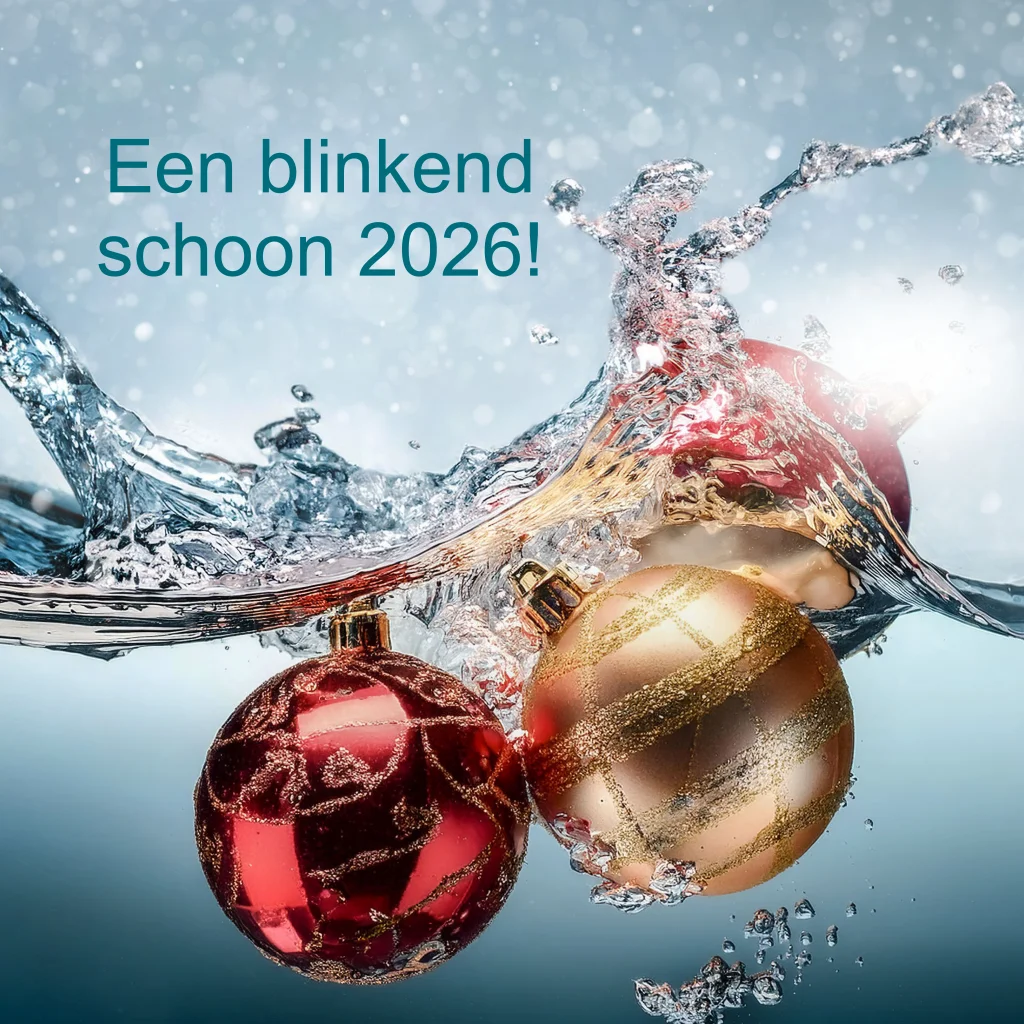 Een vrolijk fris kaartje met kerstballen in kolkend water.