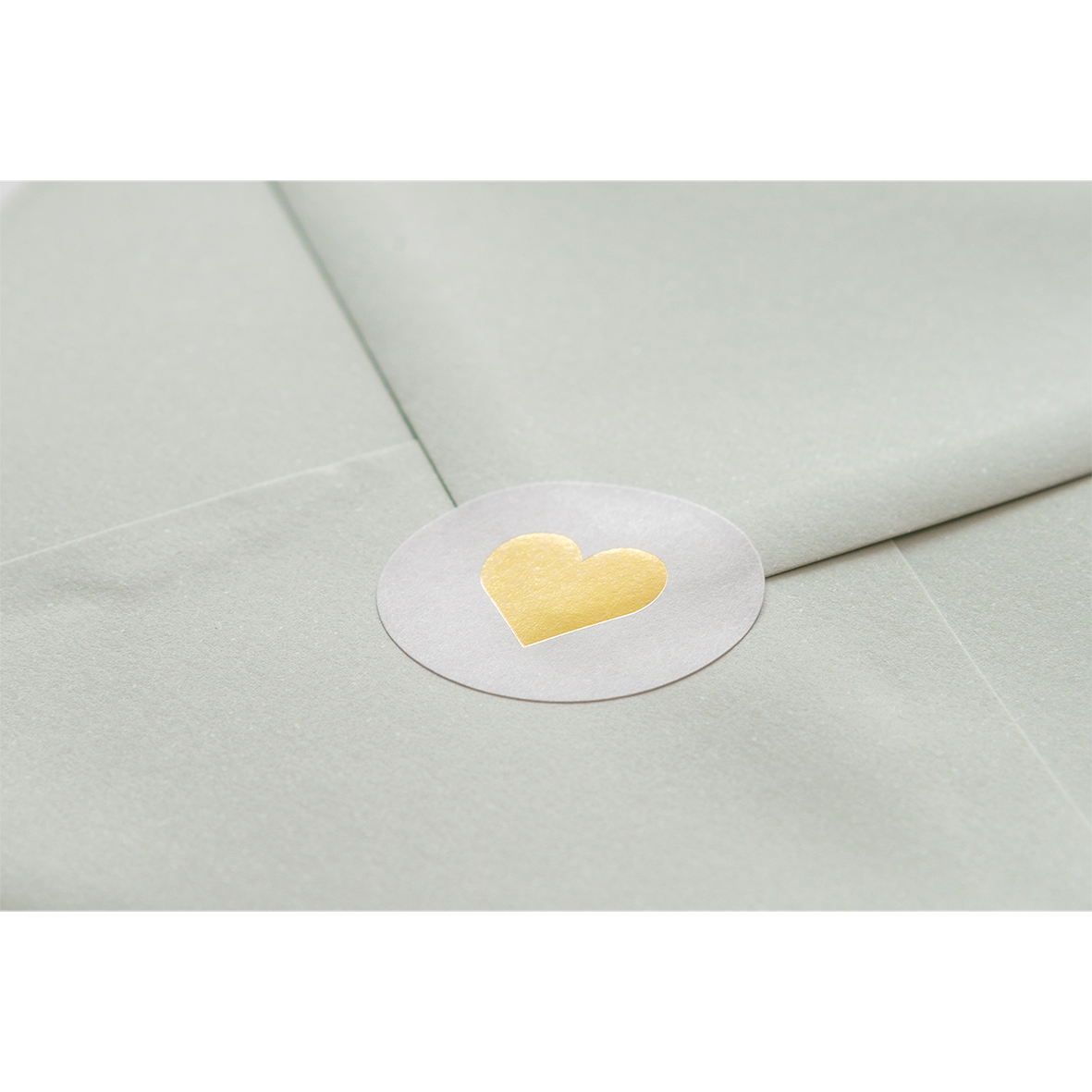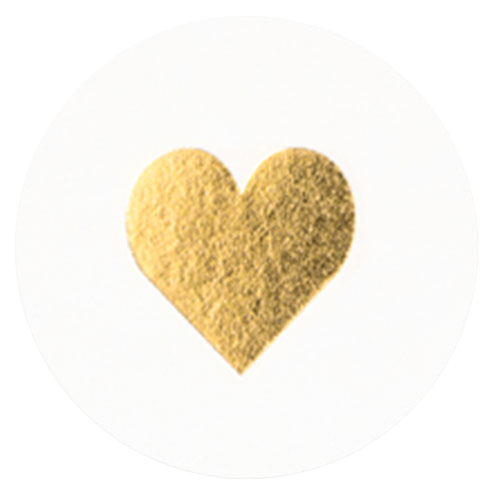 Hippe witte sluitzegel met in het midden een echt goudfolie hartje
