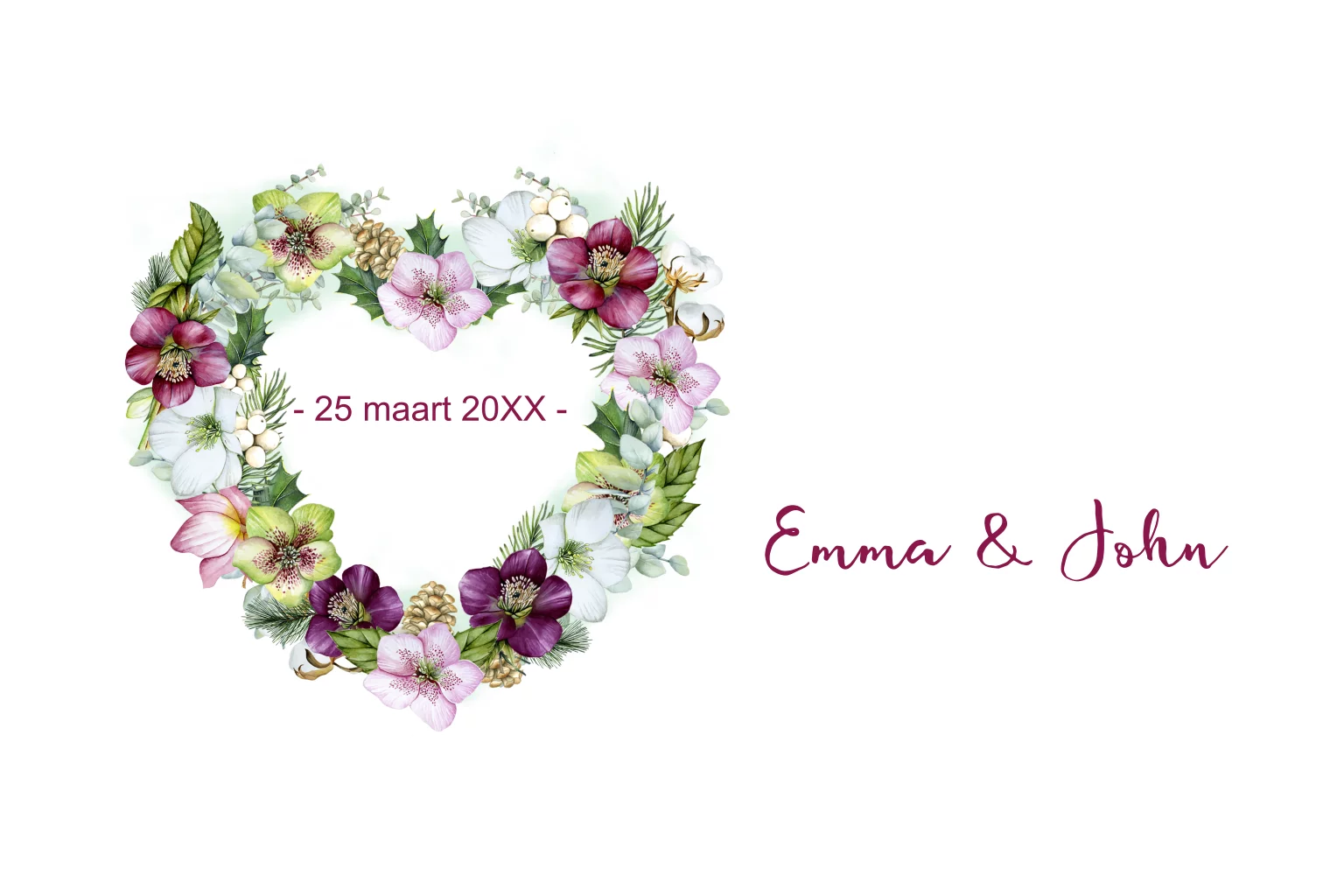 Save the date met mooi hart van helleborusbloemen.