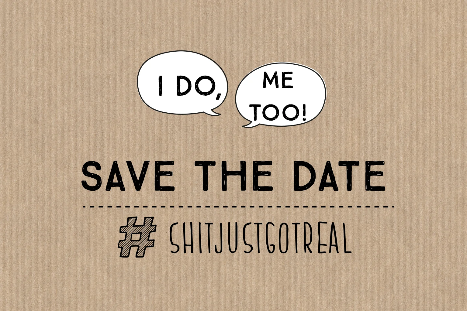 Stoere Save the Date kaart op grafisch kraftpapier.