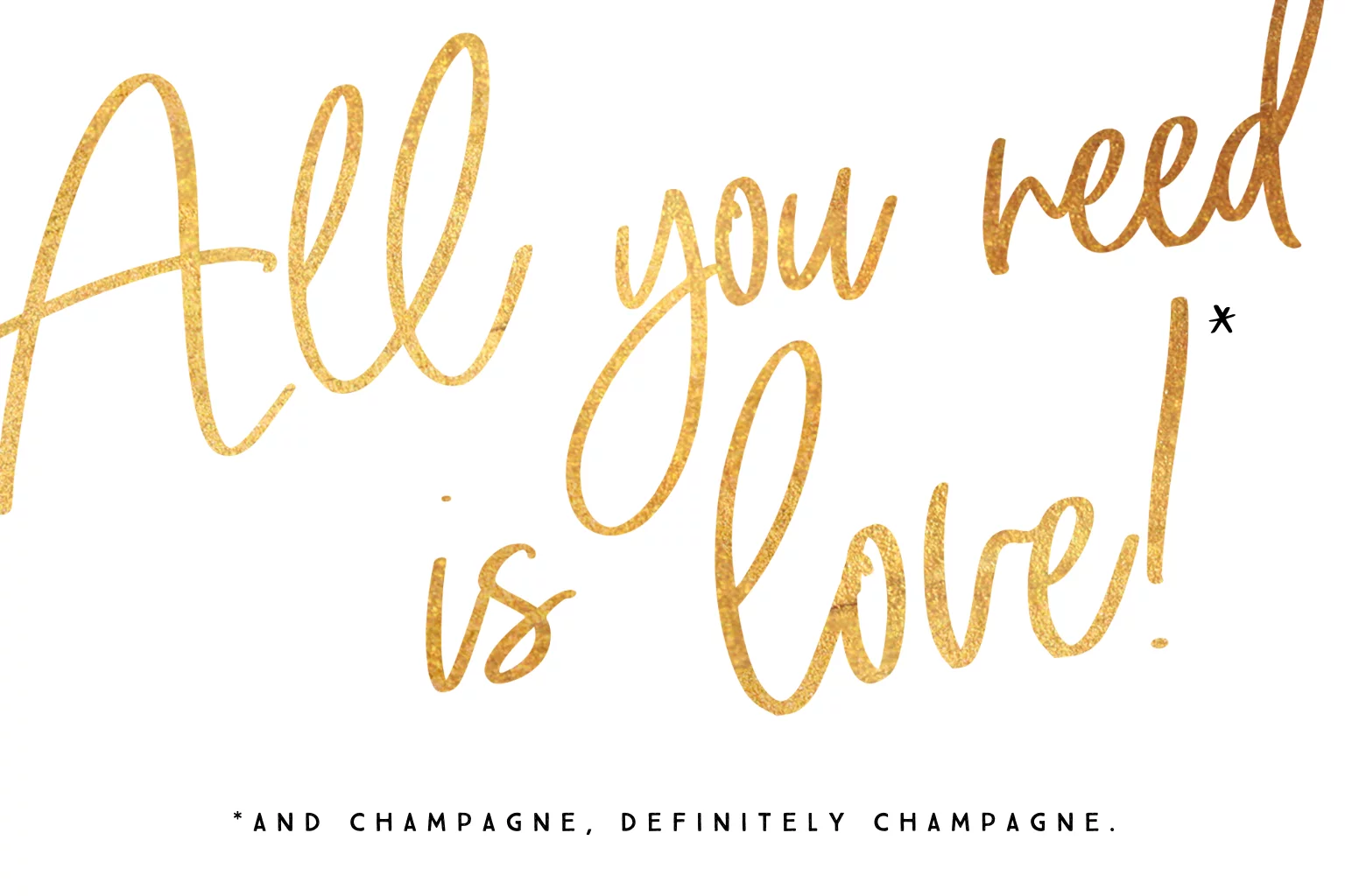 Save the Date kaarten met de tekst: All you need is love and champagne, definitely champagne!