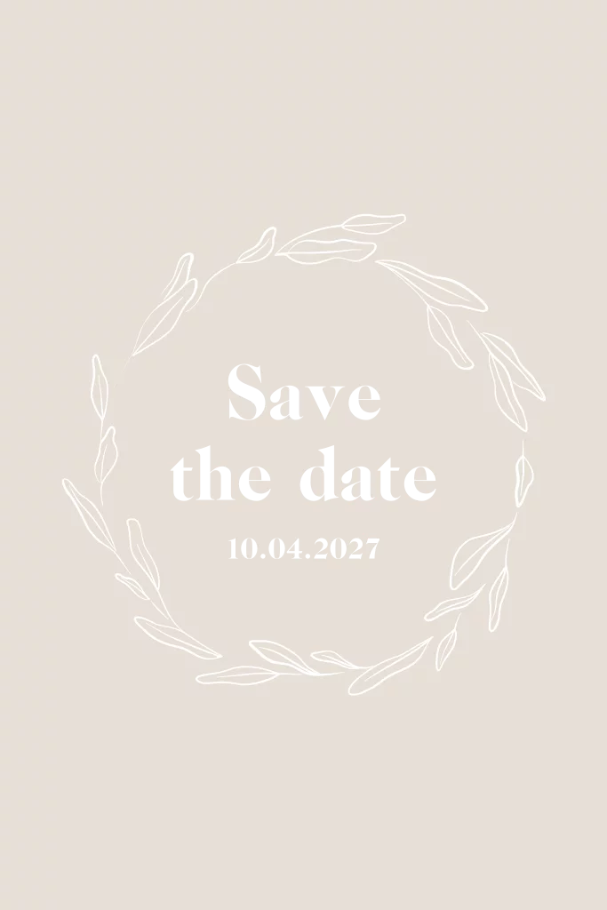 Stijlvol minimalistisch save the date kaart als vooraankondiging op jullie bruiloft, een prachtig wit design - Botanical Chic. - serie 1