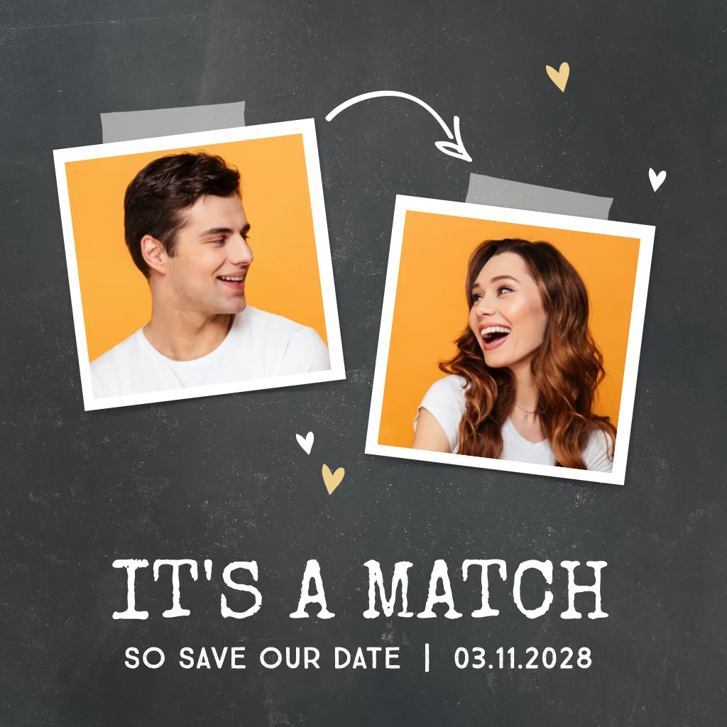 It's a match! A Tinder match to be precise. Hebben jij en je aanstaande elkaar via Tinder leren kennen? Dan is deze Save the Date echt iets voor jullie!
