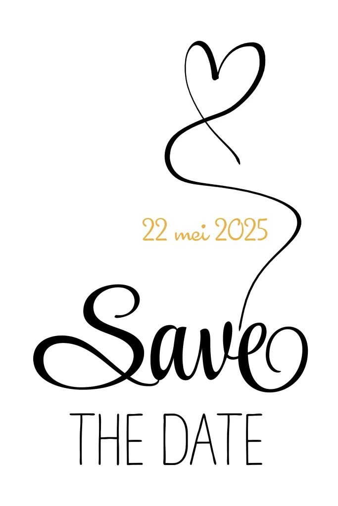 Smaakvolle zwart-wit kaart met een sierlijk hart en een hartjesslinger. de gouden achtergrond kan je naar eigen smaak aanpassen