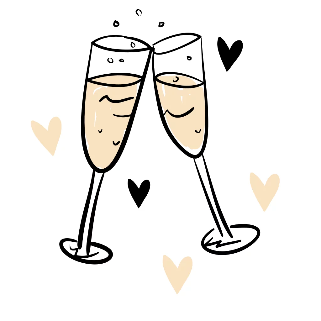 Maak je trouwkaart af met deze mooie sluitzegel met champagneglazen en hartjes.