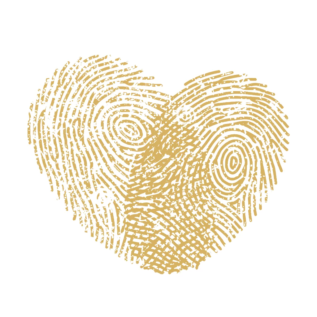goudlook vinger afdruk in de vorm van een hartje