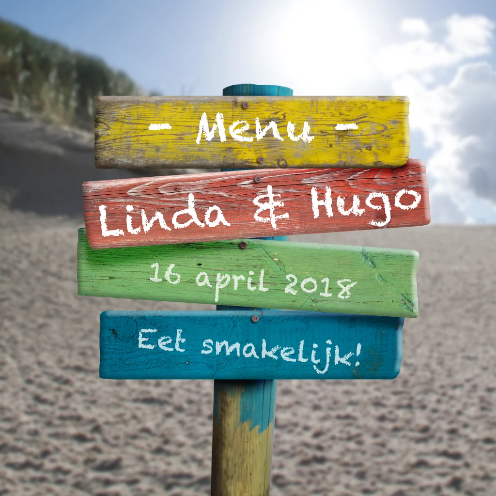Hippe menukaart met wegwijzer in verschillende kleuren.
