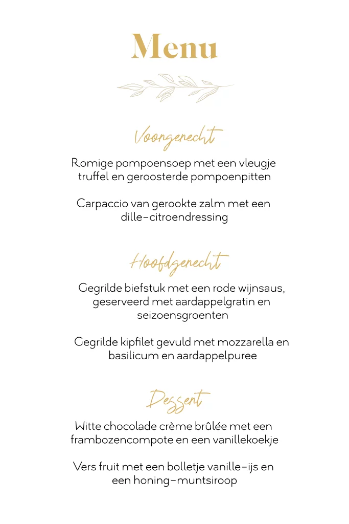 Minimalistische menukaart voor jullie trouwfeest met botanische details - Botanical chic