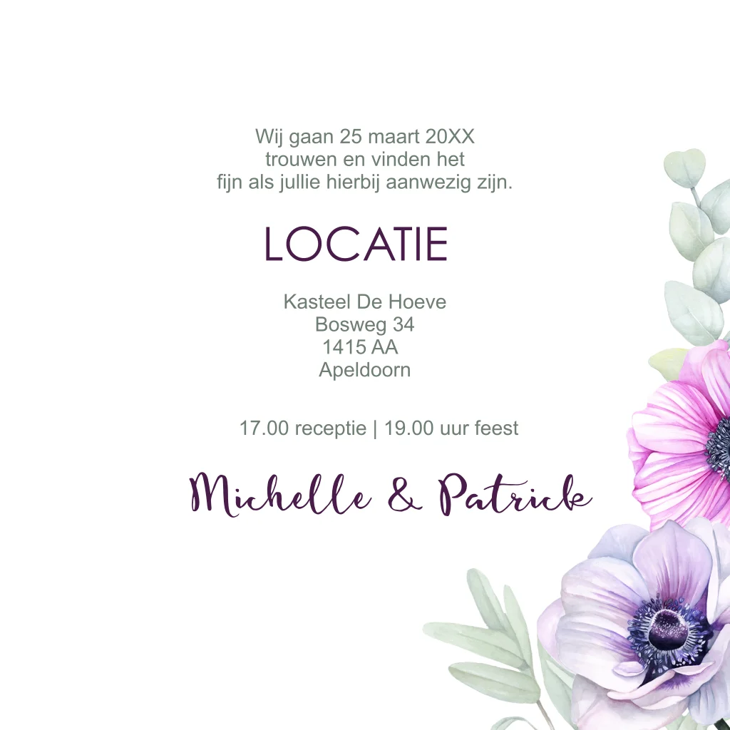 Trouwen met mooie anemonen en eucalyptusblad en mooi kader van hart voor jouw foto.