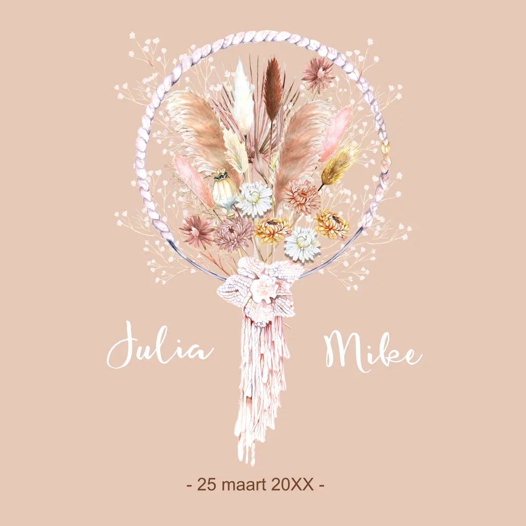 Trouwen met mooie dreamcather gevuld met droogbloemen.