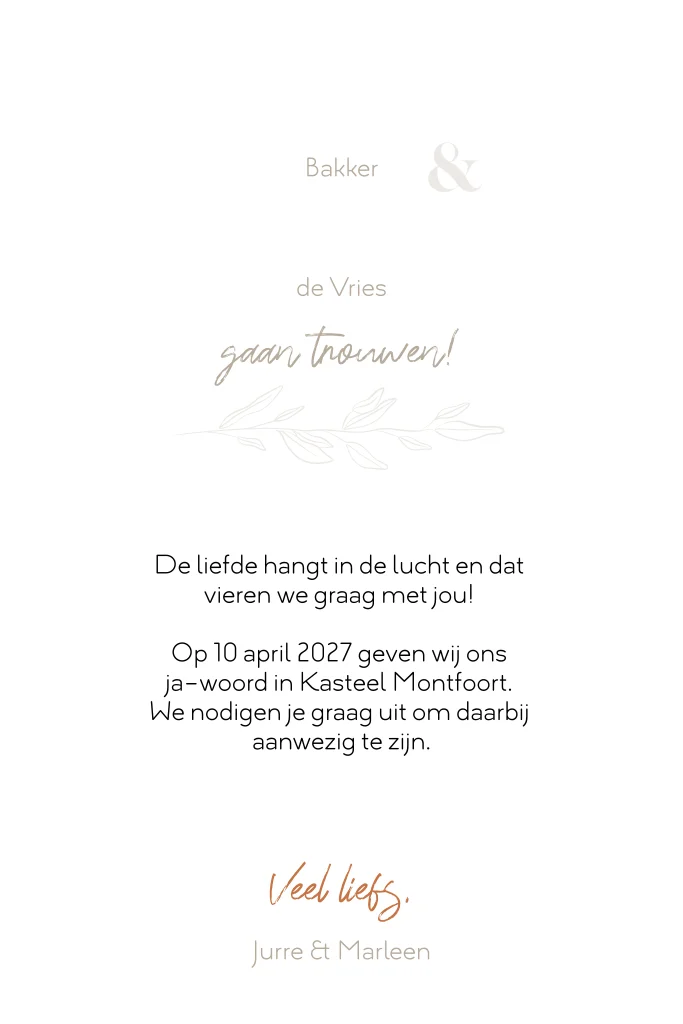 Romantische Trouwkaart met folie en sierlijke illustratie