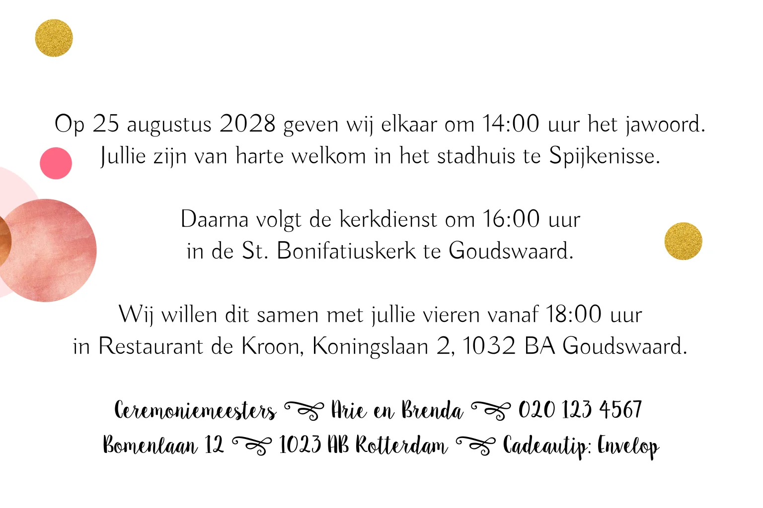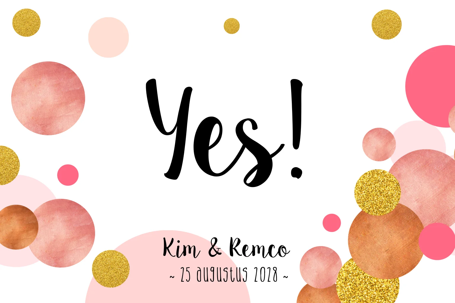 Trouwkaart met gouden en roze confetti